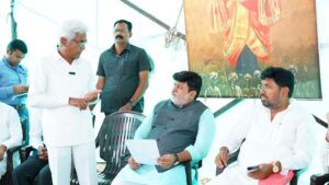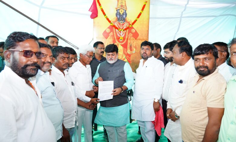 नांदेड दि. २६ :- जालना समृद्धी महामार्ग प्रकरणी गेल्या १४० दिवसांपासून आंदोलन करत असलेल्या देवमूर्ती गावातील शेतकरी बांधवांची आज राज्याचे उद्योग व मराठी भाषा मंत्री ना. उदय सामंत यांनी भेट घेतली.