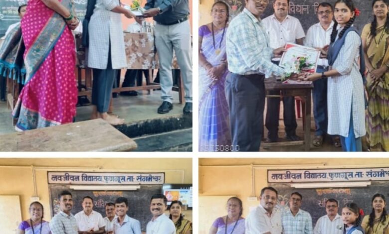 संगमेश्वर दि. २७ :- संगमेश्वर तालुका माध्यमिक आणि उच्च माध्यमिक शाळा मुख्याध्यापक संघ आणि विद्या समिती आयोजित तालुकास्तरीय कथाकथन स्पर्धेत नवजीवन विद्यालय फुणगूसची विद्यार्थीनी किर्ती सुजित शिगवण हिने माध्यमिक गटात द्वितीय क्रमांक, कु. वेदिका विश्वास बाचिम हिने प्राथमिक गटात निबंध स्पर्धेत तृतीय क्रमांक, अथर्व दशरथ घेवडे याने माध्यमिक गटात निबंध स्पर्धेत तृतीय क्रमांक प्राप्त केला आहे. विद्यार्थ्यांच्या या यशाबद्दल त्यांचे परिसरातून अभिनंदन केले जात आहे.