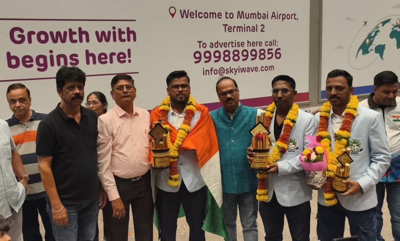 मुंबई दि. ८ :- मालदीवज येथे दि. २ ते ६ डिसेंबर दरम्यान संपन्न झालेल्या ७ व्या विश्व् कप कॅरम स्पर्धेत भारताच्या खेळाडूंनी अतिशय उल्लेखनीय कामगिरी केली असून ७ गोल्ड, ४ सिल्वर व ३ ब्रॉन्झ मेडल्स पटकवली आहेत. या संघात ८ पैकी निम्मे म्हणजेच ४ खेळाडू महाराष्ट्रातील होते. ही महाराष्ट्र कॅरम असोसिएशनसाठी अभिमानाची बाब आहे.