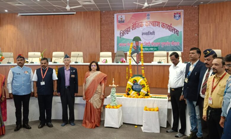 रत्नागिरी, दि. ९ :– सैनिक थंडी, वारा, ऊन किंवा अगदी गोठणबिंदू खाली तापमान असलेल्या ठिकाणी उंचीवर, खोलीवर बंकरमध्ये, समुद्राच्या खाली अशा ठिकाणी विपरीत परिस्थितीमध्ये राहून, आपल्याला सुरक्षित ठेवणाऱ्या सैनिकांसाठी एक कृतज्ञता व्यक्त करण्याची अमूल्य संधी आपल्याला मिळते. सशस्त्र सेना ध्वजदिन निधी संकलनात सर्वांनी सहभागी होऊन त्या संधीचं सोनं करावं, असे आवाहन जिल्हा परिषदेच्या मुख्य कार्यकारी अधिकारी वैदेही रानडे यांनी केले.