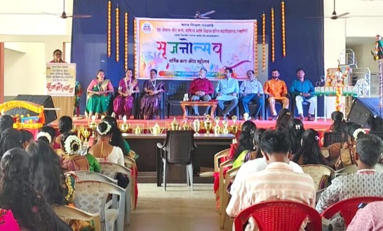 रत्नागिरी दि. २९ : भारत शिक्षण मंडळाच्या देव, घैसास, कीर कला, वाणिज्य व विज्ञान वरिष्ठ महाविद्यालयात सृजनोत्सवाची उत्साहात सांगता झाली. सृजन युवा करंडक द्वितीय वर्ष वाणिज्य शाखेने जिंकला आणि उपविजेतेपद कला शाखेने पटकावले. या वर्षीचा गोल्डन बॉय किताब मयुर वायंगणकर (द्वितीय वर्ष कला) व गोल्डन गर्ल महेश्वरी नांदगावकर (द्वितीय वर्ष कला) यांनी पटकावला.