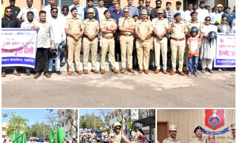 रत्नागिरी, दि. ७ :- नागरिकांनी रस्त्यावरुन चालताना व वाहन चालविताना रस्ता सुरक्षा नियमांचे पालन करावे, असे आवाहन जिल्हाधिकारी मनुज जिंदल यांनी केले. महाराष्ट्र पोलीस वर्धापन दिन तसेच रस्ता सुरक्षा अभियान निमित्ताने पोलीस विभाग व उपप्रादेशिक परिवहन विभागाच्या संयुक्त विद्यमाने उपप्रादेशिक परिवहन कार्यालय ते मिरकरवाडा या मार्गावर रस्ता सुरक्षा रॅली आज काढण्यात आली.