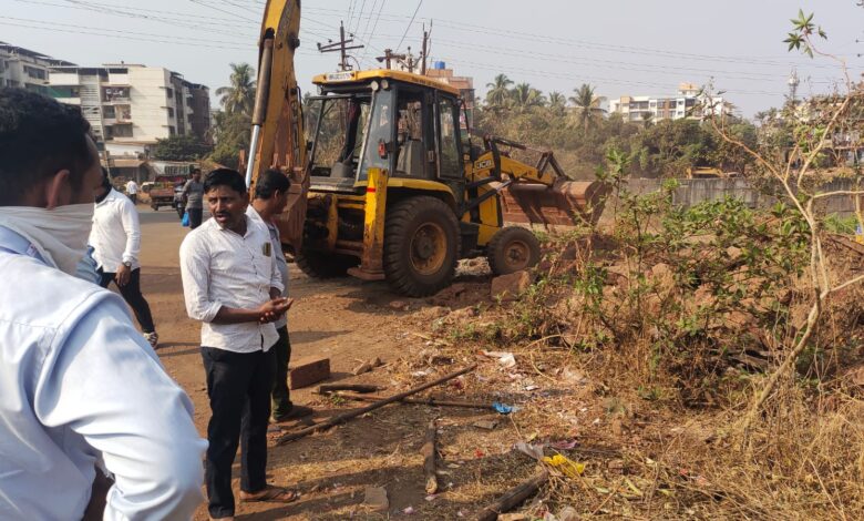कोकण नगर येथे रस्त्यावर अतिक्रमण करणाऱ्या बांधकामांवर बुलडोझर!