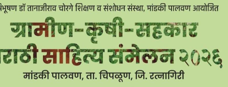 चिपळूण दि. ४ : कृषिभूषण डॉ. तानाजीराव चोरगे शिक्षण व संशोधन संस्था, मांडकी पालवण (ता. चिपळूण, जि. रत्नागिरी) यांच्या वतीने ग्रामीण-कृषी-सहकार मराठी साहित्य संमेलन २०२६ चे आयोजन करण्यात आले आहे. हे भव्य साहित्य संमेलन १३, १४ व १५ फेब्रुवारी २०२६ रोजी संस्थेच्या प्रशस्त क्रीडांगणावर संपन्न होणार आहे. या संमेलनात ग्रामीण साहित्य, कृषी सुधारणा, सहकार चळवळ तसेच कोकणातील सांस्कृतिक वारसा यावर विविध परिसंवाद, कवी संमेलन, मुलाखती, ग्रंथदिंडी व सांस्कृतिक कार्यक्रम आयोजित करण्यात आले आहेत.