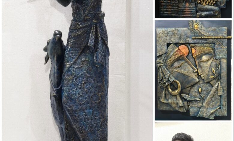 संगमेश्वर दि. ९ ( प्रतिनिधी ):- भारतीयकला परंपरेतील चौसष्ठ कला व सहा ललीत कला परंपरेतील मध्ये शिलाकलेला मोठे स्थान आहे. याच शिल्प कलेत आपलं करिअर करण्याच्या ध्यासाने एक आपल्या कोकणाच्या नांबड्या मातीतील सावर्डे गावचा तरुण सध्या देशपातळीवर नावारूपाला येत आहे. किरण किसन शिगवण आपल्या नावा प्रमाणेच बाल पणापासूनच कोकणातील लाल माती, शाडू मातीत त्यांची बोट कमाल दाखवू लागली आणि गावातील थोरामोठ्यांच्या कौतुकाने त्यांची शिल्पकला आणखीनच बहरली आणि आई बाबांच्या स्वप्नांचा आशेचा किरण शिल्पमय झाला. याच कलाकाराने आपली पत्नी करुणाच्या शिल्प कलाकृतीसह एक अप्रतिम असं प्रदर्शन मुंबईत १० फेब्रुवारी पासून नेहरू सेंटर येथे भरवले असून ते १६ फेब्रुवारी पर्यंत सर्वांसाठी खुले असणार आहे. कलारसिकांनी या प्रदर्शनाला आवर्जून भेट द्यावी आणि शिल्पाकृतींचा आस्वाद घ्यावा असे आवाहन प्रसिद्ध शिल्पकार किरण शिगवण यांनी केले आहे.