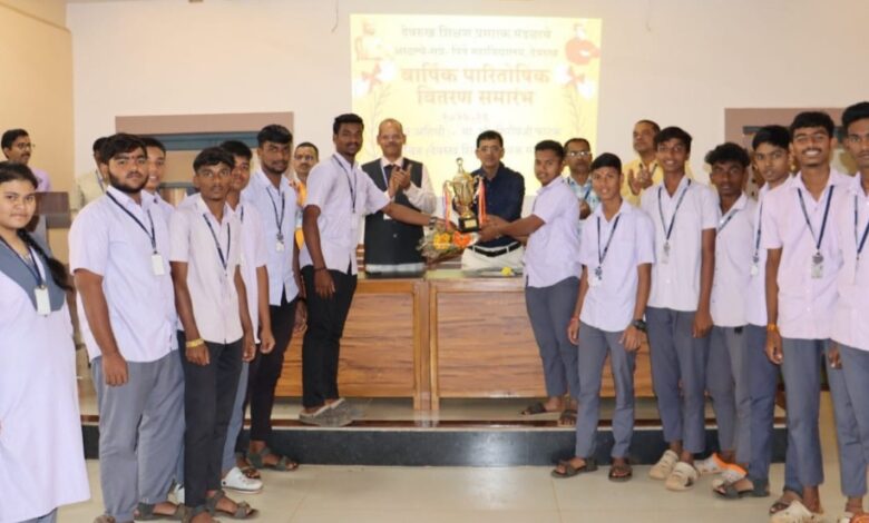 देवरुख दि. १३ ( प्रतिनिधी ):- देवरुख शिक्षण प्रसारक मंडळाच्या आठल्ये-सप्रे-पित्रे कनिष्ठ महाविद्यालयाचा ‘वार्षिक पारितोषिक वितरण समारंभ’ विद्यार्थ्यांच्या उत्स्फूर्त सहभागामुळे उल्हासपूर्ण वातावरणात संपन्न झाला. मान्यवरांच्या हस्ते दीप प्रज्वलन व सरस्वती पूजनाने समारंभाचा शुभारंभ झाला. शैक्षणिक वर्ष २०२५-२६ मधील विविध शालेय क्रीडा स्पर्धेत उत्कृष्ट कामगिरी करणाऱ्या व महाविद्यालयातील वार्षिक क्रीडा स्पर्धेत यशस्वी कामगिरी करणाऱ्या २५३ विद्यार्थी खेळाडूंना संस्था कार्यवाह शिरीष फाटक, प्राचार्य डॉ. नरेंद्र तेंडोलकर, उपप्राचार्य डॉ. सरदार पाटील, पर्यवेक्षक प्रा. एम. आर. लुंगसे आणि जिमखाना प्रमुख प्रा.धनंजय दळवी यांनी सन्मानित केले.