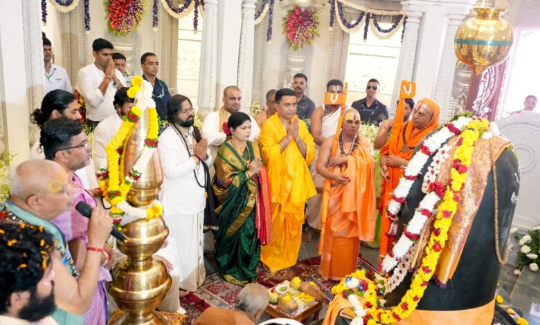 पणजी, दि. १६ :- जगद्गुरु रामानंदचार्य नरेंद्राचार्यजी यांच्या कल्पनेतून साकारलेल्या ओल्ड गोव्यातील वायंगणी येथील भव्य गोवेश्वर महाशिव मंदिरात महाशिवरात्रीचे अवचित्य साधून प्राणप्रतिष्ठा व कलशारोहण सोहळा विधीवत व मोठ्या थाटामाटात झाला. गोव्याचे मुख्यमंत्री डॉ. प्रमोद सावंत व सौ. सुलक्षणा सावंत यांच्या हस्ते धार्मिक कार्यक्रम झाले.