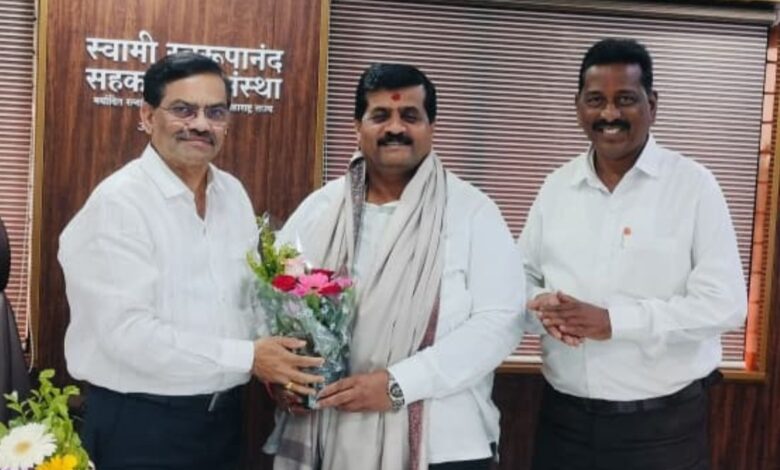 रत्नागिरी दि. १८ :- नवनिर्वाचित जिल्हा परिषद सदस्य संतोष थेराडे यांनी स्वामी स्वरूपानंद पतसंस्थेला भेट दिली. त्याप्रसंगी संस्थेचे अध्यक्ष ॲड.दीपक पटवर्धन यांनी संतोष थेराडे यांचा यथोचित सन्मान केला.