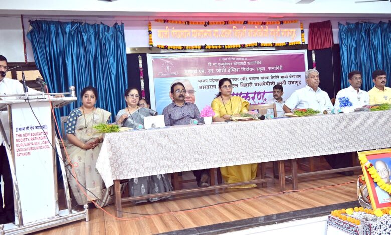 रत्नागिरी दि. २७ : भाजपा प्रदेशाध्यक्ष, आमदार रविंद्र चव्हाण यांच्या प्रेरणेतून दि न्यू एज्युकेशन सोसायटी संचलित गुरुवर्य एम. एन. जोशी इंग्लिश मिडियम स्कूलच्या सांस्कृतिक सभागृहाचे नामकरण माजी पंतप्रधान स्व. अटलबिहारी वाजपेयी स्मृती सभागृह असे करण्यात आले. अटलजींना भारतरत्न सर्वोच्च सन्मान बरोब्बर ११ वर्षापूर्वी प्राप्त झाला होता. त्याचेही आज स्मरण झाले व अटलजींची स्मृती जपली गेली आहे. यापुढेही संस्थेला लागणारी सर्व ती मदत देऊ, असे प्रतिपादन भाजपा दक्षिण रत्नागिरी जिल्हाध्यक्ष प्रशांत यादव यांनी केले.